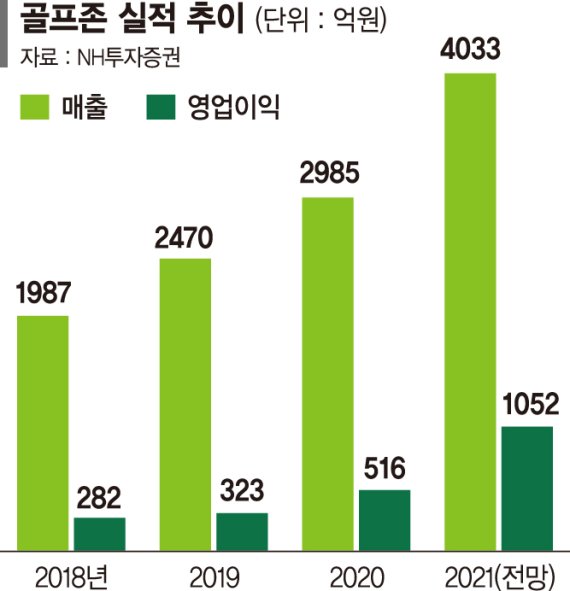 증권업계에선 하반기에도 골프존의 실적 호조가 이어질 것으로 보고 있다. 백준기 NH투자증권 연구원은 골프존의 올해 연간 매출액을 4033억원, 영업이익은 1052억원으로 전년 대비 각각 35.1%, 104.1% 증가할 것으로 전망했다.