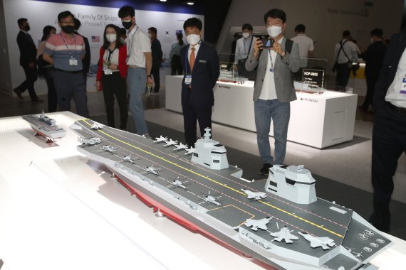 (서울=뉴스1) 장용석 기자 = 정부가 내년도 국방예산안에서 해군의 한국형 경항공모함(CVX) 사업 예산으로 72억원을 편성했다. 국방부 관계자는 이에 대해 "다양한 안보위협에 대응하기 위한 경항모 건조사업의 착수예산"이라고 설명했다. 총액 55조2277억원에 이르는 '2022년도 국방예산안' 전체를 놓고 봤을 땐 0.013%에 불과한 액수다.