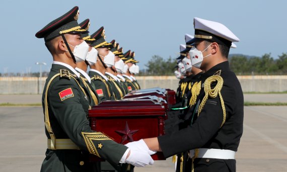 (서울=뉴스1) 장용석 기자 = 한국전쟁(6·25전쟁) 당시 전사한 중국군 유해 109구가 2일 중국 측에 인도된다.