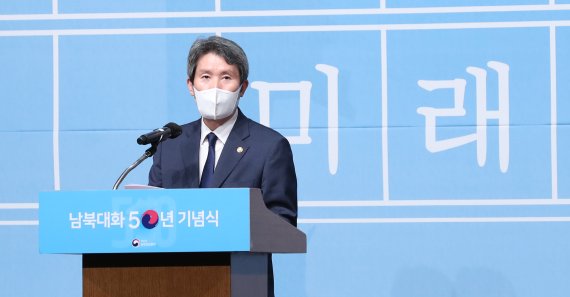 이날 이 장관은 '남북대화 50주년'을 북한과 함께 축하하지 못하는 것에 대한 아쉬움을 표하며 "멈춰선 남북대화의 물길을 반드시 다시 열어내야만 한다는 무거운 사명감과 책임감이 올라온다"고 밝혔다.