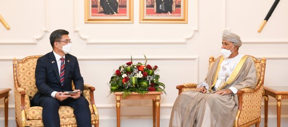 특히 시합 부총리는 이날 회담에서 문재인 대통령에 대한 하이탐 빈 타리크 알 사이드 오만 국왕의 안부 인사를 전달하며 "아직까지 이뤄지지 못한 한국 대통령의 오만 공식 방문이 성사되기를 희망한다"며 "그간 논의를 진행해왔던 재래식 전력 분야에서의 양국 간 방산협력에 추가해 한국이 선도하고 있는 첨단 무기체계에 대한 협력을 희망한다"며 "이를 위해 오만측 실무대표단의 방한을 추진하겠다"고 말했다.