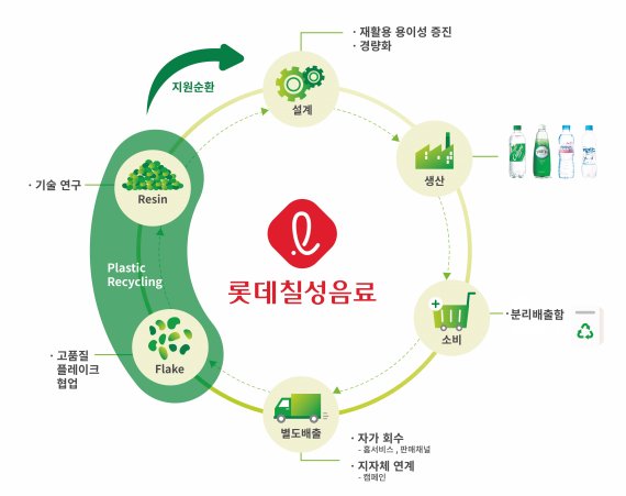 롯데칠성음료는 재생원료를 활용해 에코백 굿즈 뿐만 아니라 앞치마 등 거래처 판촉물로 선보이고, 오는 10월에는 아웃도어 브랜드 '블랙야크'와 손잡고 업사이클링 유니폼을 제작해 영업사원에게 지급하는 등 다양한 자원순환 굿즈를 선보일 계획이다. 앞으로도 자원순환 구축 확대를 위해 빈 페트병 회수 거래처를 수도권으로 확대하고 온라인 공식몰 '칠성몰'의 생수 홈서비스 구독자를 대상으로 하는 '페트병 회수 신청 서비스' 홍보에도 힘을 쏟으며 빈 페트병 회수 규모를 더욱 키워나갈 예정이다.