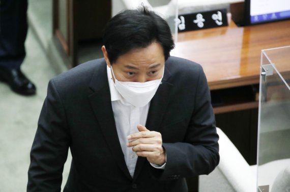 (서울=뉴스1) 이밝음 기자 = 오세훈 서울시장이 6일 경찰의 파이시티 관련 선거법 위반 수사에 대해 청와대 하명 의혹을 제기했다.
