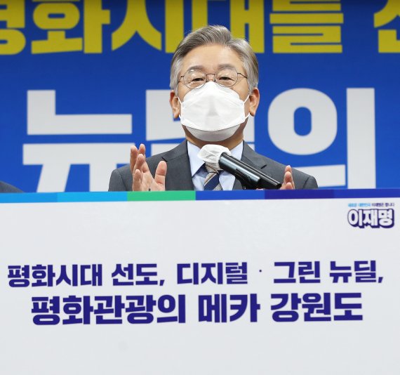 초반 기선제압에 성공한 이 지사는 네거티브 선거 대신 정책 선거, 원팀 정신을 연일 강조하면서 포지티브 선거전에 공을 들이고 있다. 이 지사는 이날 강원지역 발전 공약을 발표하는 등 정책 알리기에 박차를 가했다.