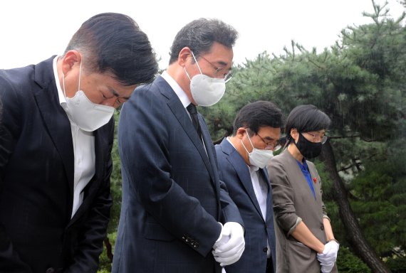 이 대표는 당초 이날 계획에 없던 서울 동작구 국립서울현충원 방문 일정을 추가하고 김 전 대통령 묘소를 참배했다.