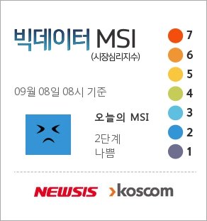 뉴시스와 코스콤이 공동으로 뽑아낸 빅데이터 MSI(http://m.newsis.com/stock.html, 모바일 전용)에 따르면 전 거래일 오후 4시부터 이날 오전 8시까지 집계된 코스피 MSI 레벨은 전 거래일 대비 세 단계 하락했다.