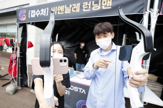 (광주=뉴스1) 허단비 기자 = 제9회 광주디자인비엔날레 기간 동안 비엔날레전시관과 중외공원 일원에서 게임형 증강현실 프로그램인 '비엔날레 런닝맨'이 운영된다.