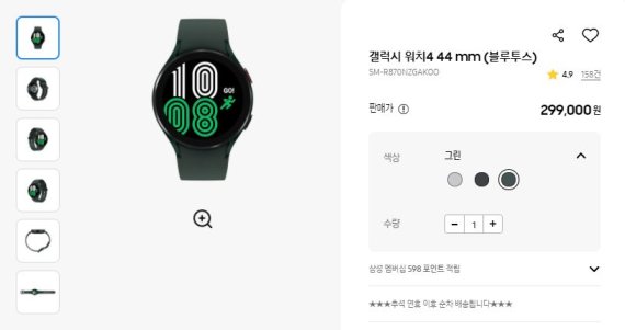 갤럭시워치4는 출시 이후 품귀 현상을 겪으며 배송에 차질이 빚어지고 있다. 이날 삼성전자 공식 온라인몰에 따르면 '갤럭시 워치4' 44㎜ 블루투스 모델은 '추석 연휴 이후 순차 배송한다'고 안내한다.