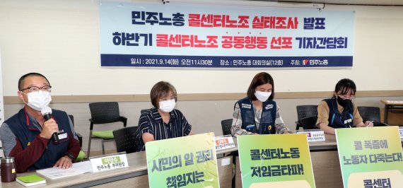 민주노총 콜센터 노조는 14일 기자회견을 통해 콜센터 노동자의 근무 실태를 전하고 대책 마련을 위한 공동행동에 나선다고 밝혔다.