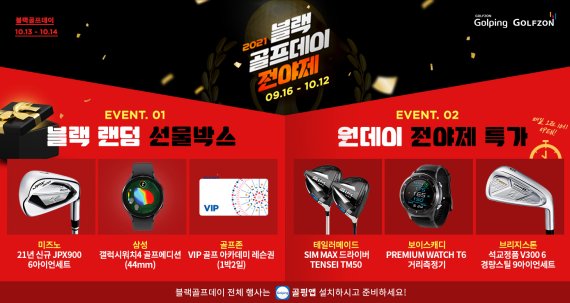 블랙선물박스 이벤트는 골프 쇼핑 할인행사인 블랙골프데이의 사전 행사다. 이벤트 참여는 골핑 홈페이지와 골핑 모바일 앱을 통해 가능하다.