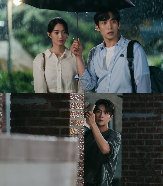 이 가운데 공개된 스틸컷에는 제대로 불붙은 이들의 삼각 로맨스를 기대하게 만든다. 먼저 첫 번째 스틸컷에는 비 오는 밤에 함께 우산을 쓰고 있는 혜진과 성현의 투 샷이 담겨 있다. 나란히 한 우산을 쓰고 있는 두 사람의 모습은 마치 대학 시절로 다시 돌아간 듯 청량해 보이는 가운데 또 다른 스틸컷에는 두식의 모습이 포착되어 있어 흥미를 더한다.