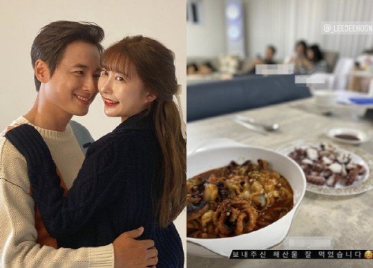 아야네는 21일 자신의 소셜네트워크서비스에 "보내주신 해산물 잘 먹었습니다"라며 사진을 게재했다. 사진에는 이지훈 가족이 문어로 만든 요리를 해 먹는 모습이 담겼다.