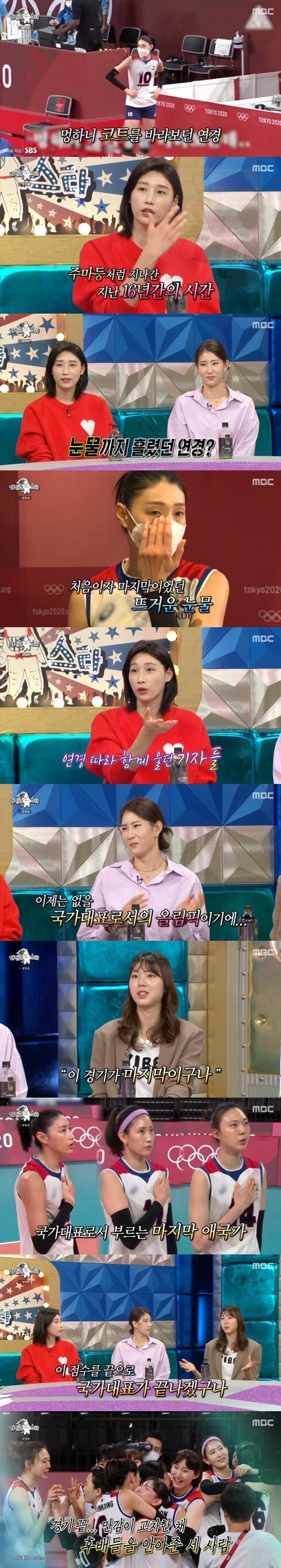 지난 22일 오후 방송된 MBC 예능 프로그램 '라디오스타'에서는 배구선수 김연경, 김수지, 양효진이 2020 도쿄올림픽을 마지막으로 국가대표 생활에 마침표를 찍은 소감을 밝혔다.