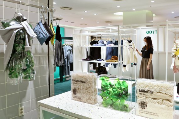 23일 서울 송파구 잠실동에 위치한 잠실점 2층 OOTT 매장에서 고객이 상품을 구경하고 있다.