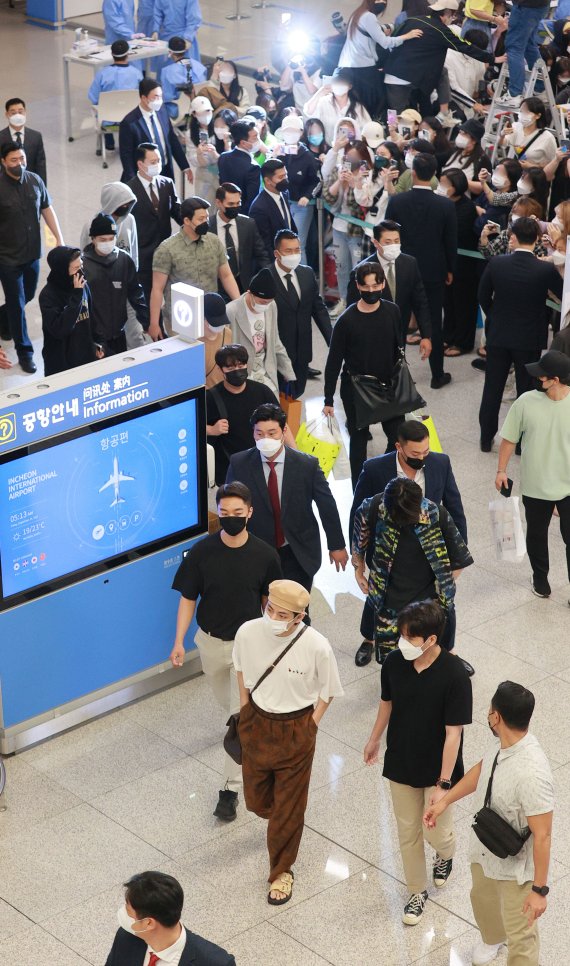 이날 공항에는 이른 새벽부터 방탄소년단을 보기 위해 모인 팬들과 취재진들로 북적했다. 방탄소년단이 출국장에 모습을 드러내자 팬들은 환호했다.