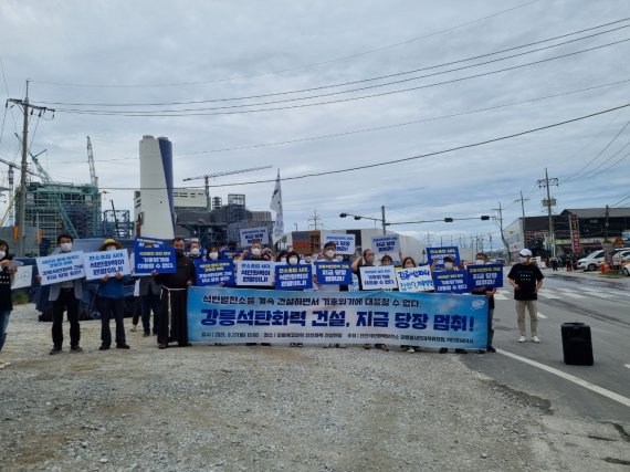 이들은 "강릉에 지어지고 있는 석탄발전소는 2080MW 규모로 가동되기 시작하면 연간 약 1530만톤의 온실가스를 배출할 것으로 예상된다"며 "이는 현 정부가 그린 뉴딜을 통해 5년간 73조원을 들여 감축할 온실가스 1225만톤보다 많은 양"이라고 말했다.