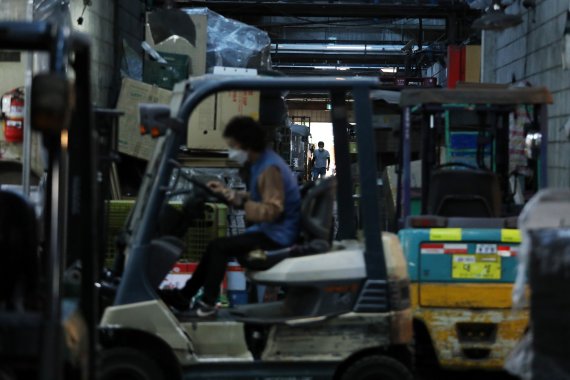 코로나 때문에 추석 대목에도 손님이 끊겼던 가락시장에서는 확산세가 여전하다. 통상 명절 대목 이후 손님이 줄어들긴 하지만 이날 가락시장 청과물시장에서는 손님의 모습을 찾기 힘들었다. 손님 발걸음이 끊기자 상인들은 무심하게 휴대폰으로 영상을 보거나 아예 자리를 비웠다.