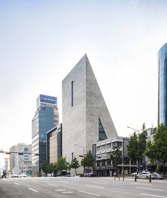 한편 헤르조그 & 드 뫼롱이 한국에서 진행한 첫 번째 건축물인 송은문화재단 신사옥은 서울에서 가장 상업적인 지역에 자리한 비영리 전시 공간이다.
