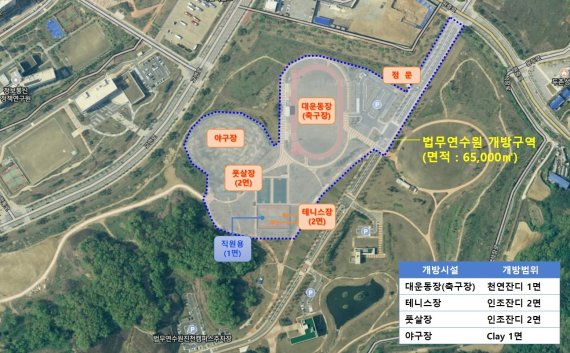 법무연수원 체육시설은 진천군과 충북혁신도시에 거주하는 주민이나 단체·직장·학교 등에 소속돼 있으면 누구나 사전예약을 거쳐 자유롭게 이용할 수 있다.