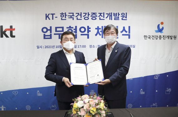 KT는 보유한 인공지능(AI) 기술과 로봇, IT 기술 역량을 한국건강증진원이 추진하는 건강증진 사업에 적용하고 앞으로의 디지털 전환에 협력하기로 했다. 한국건강증진개발원은 KT의 기술지원 및 교육 활동을 통해 기존에 추진하던 AI·IoT 기반 어르신 건강관리 시범사업과 오늘건강 앱 서비스를 안정화시키고 전국 보건소들로 확산 및 안착시킨다는 계획이다.