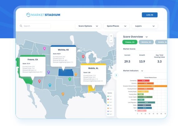 마켓 스타디움은 상업용 부동산 지역분석 플랫폼을 운영하는 프롭테크 스타트업이다. 도시계획 기반 지식 및 공간 빅데이터 분석을 통해 미국 전역 부동산 시장을 분석하고 미래 투자지역을 분류한다.