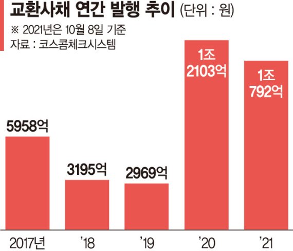코로나19 직전인 2019년 연간 EB발행액이 3000억원 안팎에 불과했던 것과 비교하면 3배 이상 뛴 것이다.
