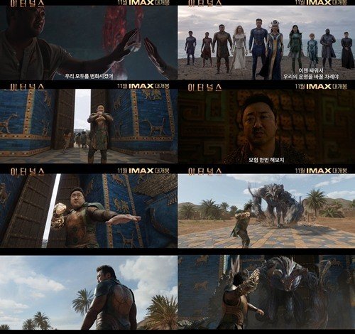"이 행성과 이곳 사람들은 우리 모두를 변화시켰어. 이젠 싸워서 우리의 운명을 바꿀 차례야"라는 의미심장한 대사와 함께 '길가메시' 역의 마동석이 "모험 한번 해보자"라는 강렬한 대사를 전하며 시선을 사로잡는다.