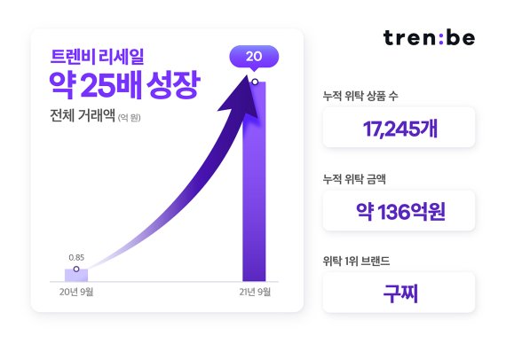 명품 쇼핑 플랫폼 트렌비는 지난 9월 자사 중고 명품 '리세일(되팔기) 비즈니스' 서비스 월 거래액 20억원을 넘었다고 14일 밝혔다.
