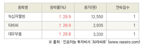 [fnRASSI]오늘의 상한가, 녹십자웰빙 29.9% ↑