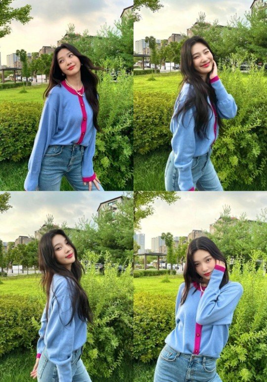 공개된 사진 속 조이는 파란색 카디건을 입고 포즈를 취하고 있다. 특히 풀숲에서 미소를 보이고 있는 조이는 상큼한 매력을 과시하고 있다.