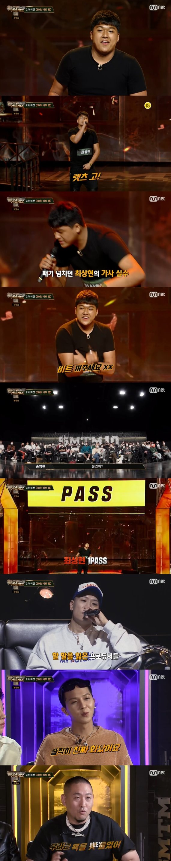 이들은 뒤늦게 "사실 탈락이 맞죠. 가뭄의 단비 같은 비트에 빠져 있었던 것 같다. 다른 친구들한테 미안하더라"라고 얘기했다. 하지만 대기실에 돌아간 최상현을 바라보는 래퍼들의 시선은 곱지 않았다.