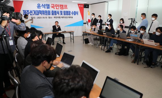 윤 후보는 지난 13일 제주 4·3 평화공원을 참배한 뒤 제주지역 언론인 간담회에 참석해 다리를 벌리고 앉는 '쩍벌' 자세를 취하고 있는 모습이 포착됐다. 윤 후보가 앉은 테이블 앞부분이 막혀있지 않아 쩍벌 자세가 그대로 노출된 것이다.