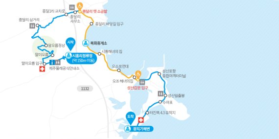 제주 서귀포시 성산읍 시흥리정류장을 시작점으로 말미오름-알오름 정상-종달리사무소-종달리옛소금밭-오소포연대-터진목 4.3유적지 등을 거쳐 광치기해변에서 끝이 난다.