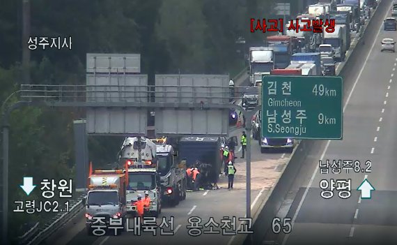 고속도로순찰대 관계자는 "사고 수습까지 상당한 시간이 걸릴 것으로 예상된다. 남성주IC로 우회하기 바란다"고 말했다