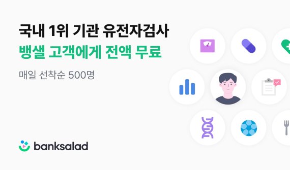 [파이낸셜뉴스] 마이데이터 전문기업 뱅크샐러드가 개인의 건강 데이터 활용 경험을 확장한 ‘유전자 검사’ 베타 서비스를 시작한다고 21일 밝혔다.