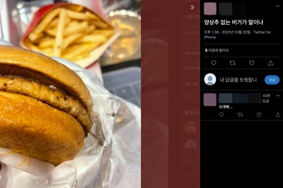 22일 각종 소셜네트워크서비스(SNS)에는 소비자들의 '맥도날드 양상추 빠진 햄버거'에 대한 의견이 쏟아지고 있다.