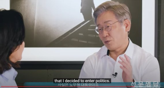 (워싱턴=뉴스1) 김현 특파원 = 지난 9월초 주목을 받았던 이재명 더불어민주당 대선후보와 박영선 전 중소벤처기업부 장관의 대담 '선문명답', '명문선답' 영어자막 버전이 추가됐다.