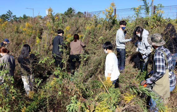 [목포=뉴시스] 박상수 기자 = 환경부 산하 국립호남권생물자원관(관장 류태철)은 지역협력 사회공헌활동의 일환으로 전남 목포시 고하도 일대에 분포한 생태계교란종 양미역취 제거작업을 실시했다고 27일 밝혔다.