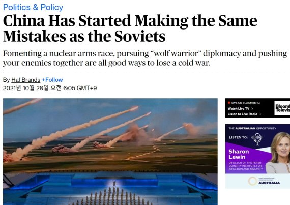 중국의 최신 행보는 결국 붕괴했던 소련을 연상시킨다고 블룸버그는 지적했다.
