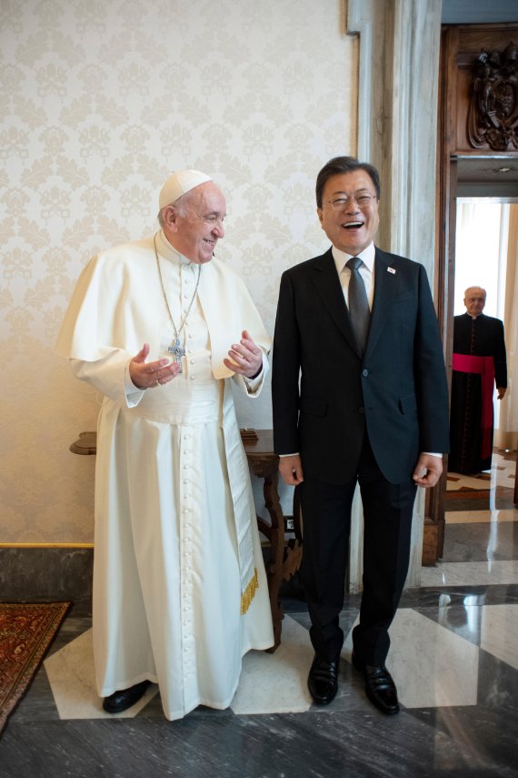 문 대통령은 이날 프란치스코 교황으로부터 한반도 평화에 대한 교황의 지속적인 지지를 확인했다. 아울러 문 대통령과 프란치스코 교황은 코로나19, 기후변화 등 인류가 당면한 글로벌 현안에 대해서도 의견을 교환했다.