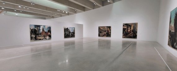 이번 전시는 '네오 라우흐'와 '로사 로이'가 함께 그린 작품도 선보인다. '경계, 2018'는 두 부부 작가가 서로 체스를 두 듯 번갈아가며 그린 작품이다. 마치 소란스러운 서커스 무대를 연상시키는 이 작품은 한 명이 수수께끼를 내듯 캐릭터를 그려놓으면, 다음 사람이 자신의 캐릭터를 그려 넣는 식으로 완성했다.
