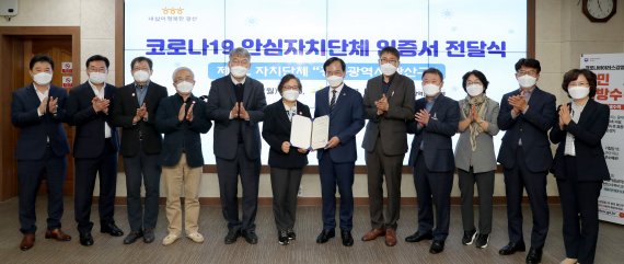 [광주=뉴시스] 변재훈 기자 = 광주 광산구는 전국 시민단체, 전문가들로부터 자율방역 실천 등 단계적 일상 회복에 앞장서는 '안심자치단체' 1호로 인증받았다고 1일 밝혔다.