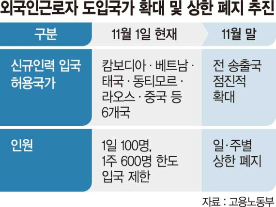 이를 단계적 일상회복 기조에 따라 점진적으로 전 송출국에서 입국이 가능토록 하고, 하루 입국 가능인원의 상한도 폐지하겠다는 것이다. 현재 사증발급 불허국은 필리핀·파키스탄·미얀마·우즈베키스탄·키르기스스탄 등이다.