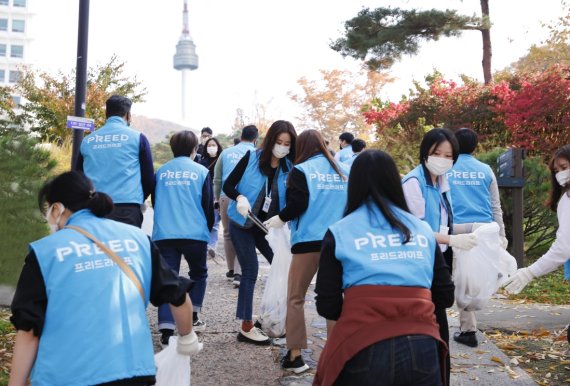 지난 2일 프리드라이프 임직원 20여 명은 서울 중구 사옥에서 출발해 남산공원 내 백범광장공원과 퇴계 이황 선생 동상까지 이르는 산책로를 걸으며 약 3시간에 걸쳐 정화 활동을 진행했다.