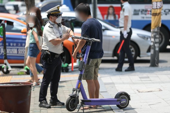 (서울=뉴스1) 박종홍 기자 = 앞으로 전동킥보드 등 공유 개인형 이동수단(PM) 사고 시 보행자 등 제3자도 보험으로 보상받을 수 있게 될 전망이다. PM 이용 시 운전면허를 확인하는 자동검증 시스템도 도입된다.