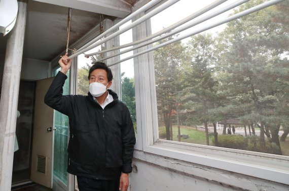 오 시장은 주민 간담회에 앞서 10평짜리(전용면적 33㎡) 하계5단지 공실을 방문해 건물 내부 상황을 점검했다.