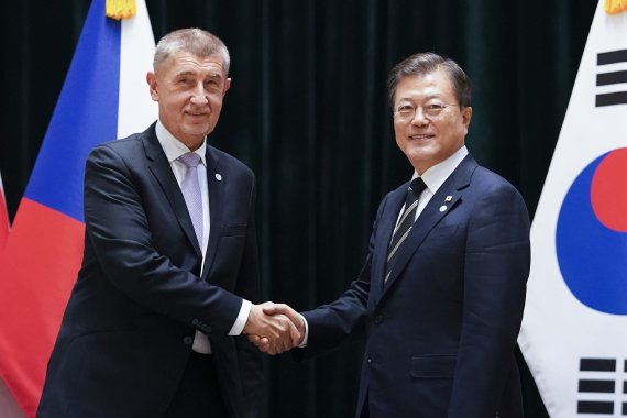 아울러 양 정상은 양국이 지난해 코로나19 대응 과정에서 진단키트 수출 및 경험 공유, 양국 국민 상호 귀국 지원, 한국 기업인의 예외적 체코 입국 허용 등 긴밀히 협력해 온 것을 평가하고 이와 같은 협력을 앞으로도 지속해 나가자고 했다.