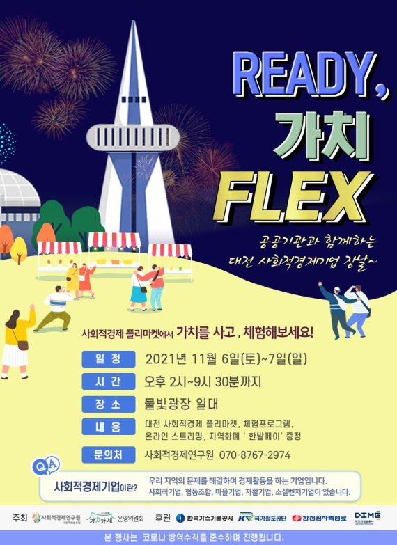 (대전=뉴스1) 김경훈 기자 = 대전마케팅공사가 6일과 7일 이틀간 한빛탑 물빛광장에서 지역 사회적경제기업 판로지원을 위한 장터인 ‘2021 공공기관과 함께하는 READY, 가치플렉스’ 행사를 연다.