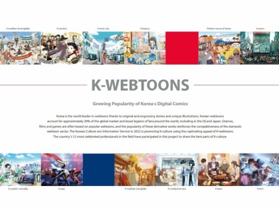 (서울=뉴스1) 박정환 문화전문기자 = 문화체육관광부 산하 해외문화홍보원(원장 박정열)은 웹툰 작가 12명이 한국의 대표적인 이미지를 담아낸 '2022 대한민국 해외홍보 달력'을 제작·배포한다.