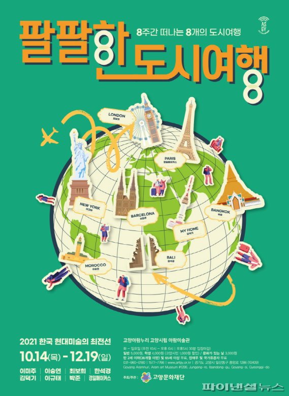 【파이낸셜뉴스 고양=강근주 기자】 고양문화재단이 <팔팔한 도시여행- 8주간 떠나는 8개 도시여행>展을 오는 12월19일까지 고양시립 아람미술관에서 개최한다. 이번 전시는 코로나19로 자유로운 일상이 어려워진 시기에 여행을 떠나고 싶은 이들을 위해 기획됐다.